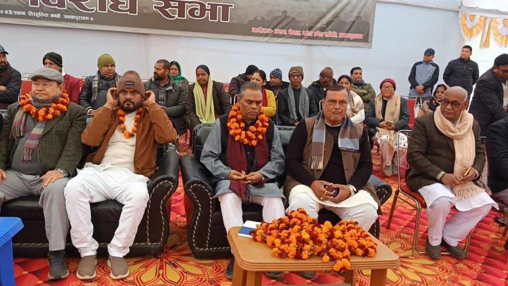 विरोध सभामा सहभागीहरूले संघीयता विरोधी गतिविधि, सुशासनको अभाव, सामाजिक न्यायमाथि भइरहेको आक्रमण तथा जनजीविकासँग जोडिएका समस्याको विरोधमा चर्का नाराबाजी गरेका थिए। जनकपुरधाम–तिरहुतिया गाछीबाट सुरु भएको कार्यक्रममा मधेशका विभिन्न जिल्लाबाट हजारौँ सहभागीको उल्लेख्य उपस्थिति रहेको आयोजकले जनाएको छ।